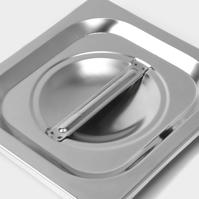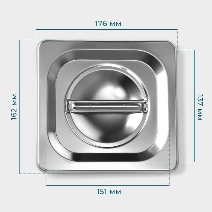 Изготовленная из высококачественной нержавеющей стали, крышка обеспечивает долговечность и защиту ваших блюд от загрязнений и потерь свежести. Её прямоугольная форма с толщиной 0,8 мм гарантирует прочность и стойкость к деформациям, а стильный серебристый цвет добавляет элегантный акцент вашему сервировочному столу.
