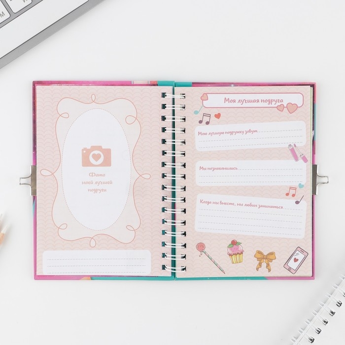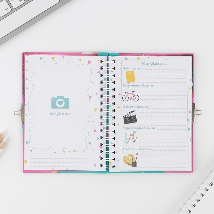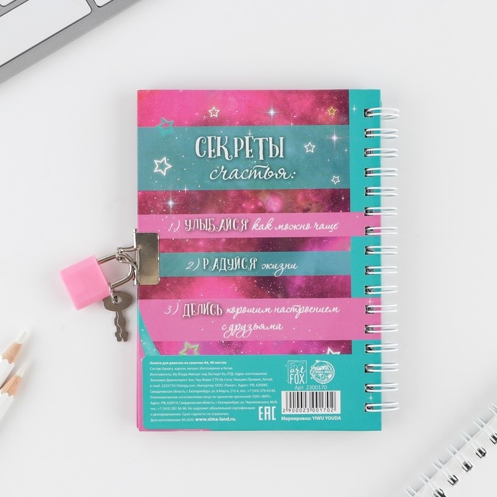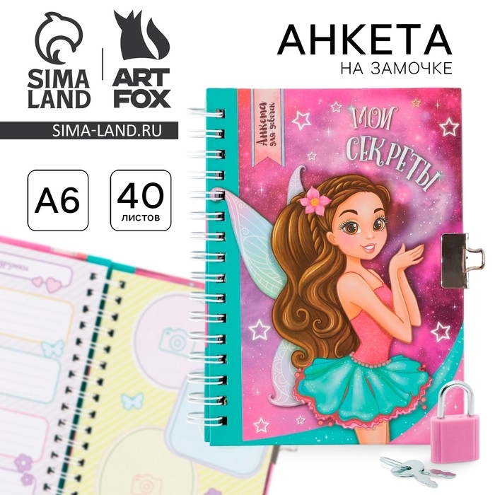 Анкета на замочке, в твердой обложке А6, 40 листов «Мои секреты»