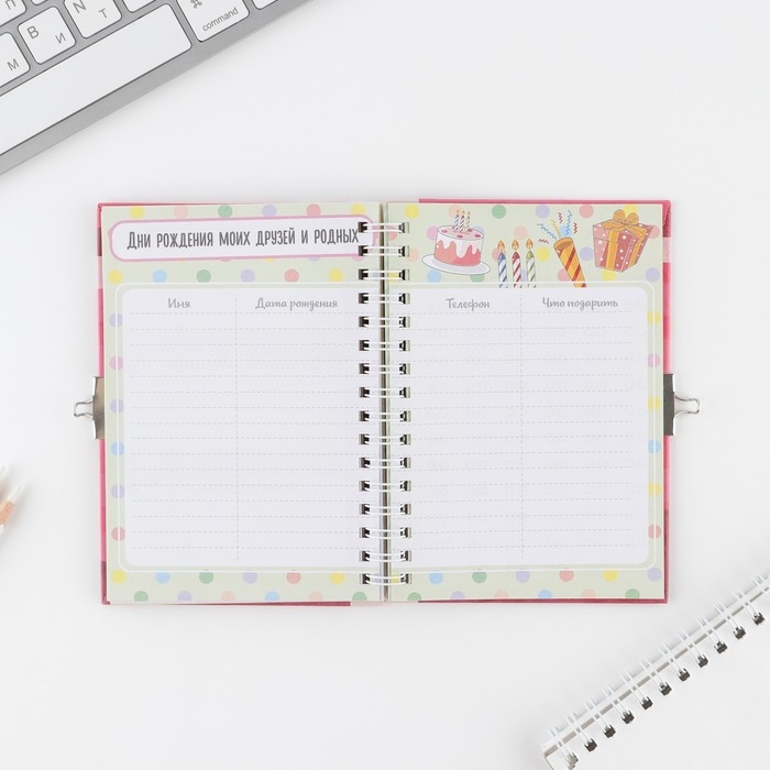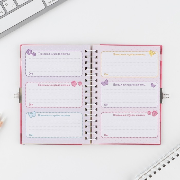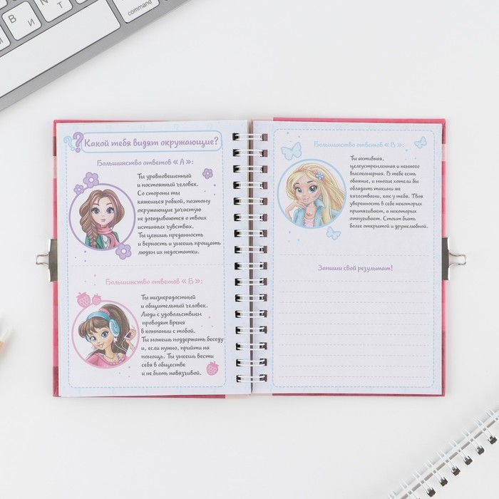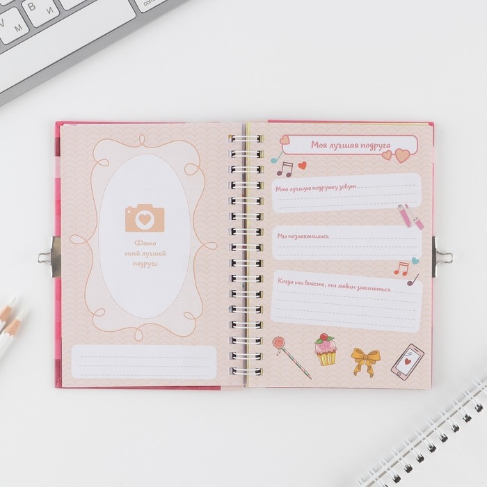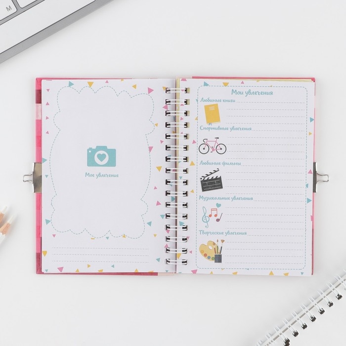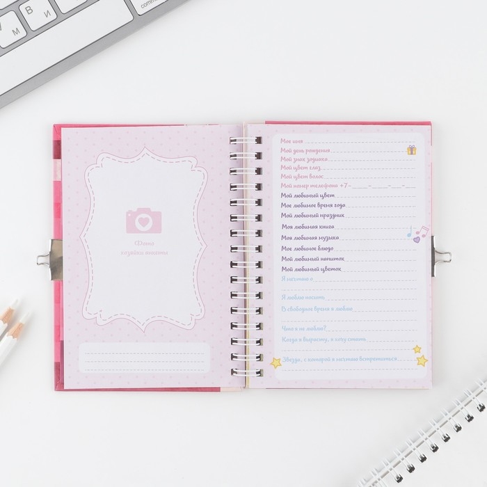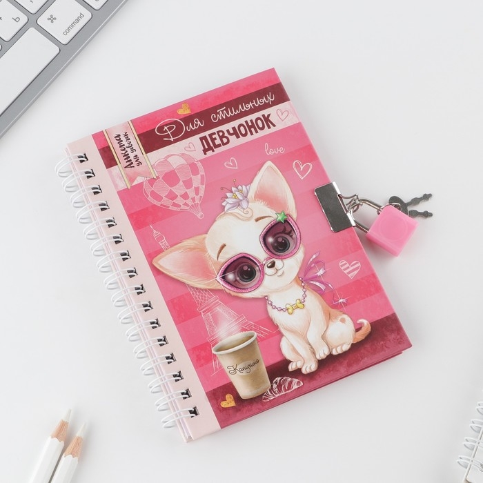 Анкета на замочке, в твердой обложке А6, 40 листов «Для стильных девчонок»