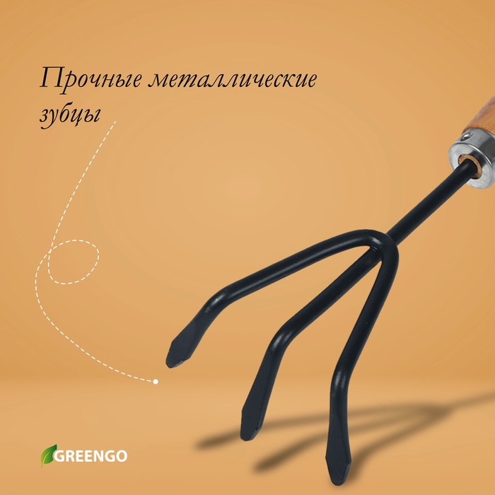 Рыхлитель Greengo, длина 30,5 см, 3 зубца, деревянная ручка с поролоном