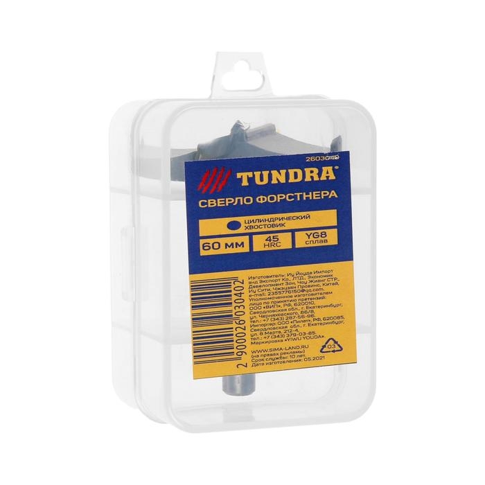 Сверло Форстнера ТУНДРА, твердосплавные пластины, цилиндрический хвостовик, 60 мм