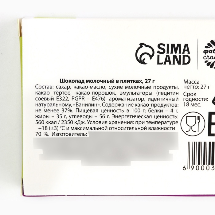 Шоколад молочный «Пофигин»: 27 г.