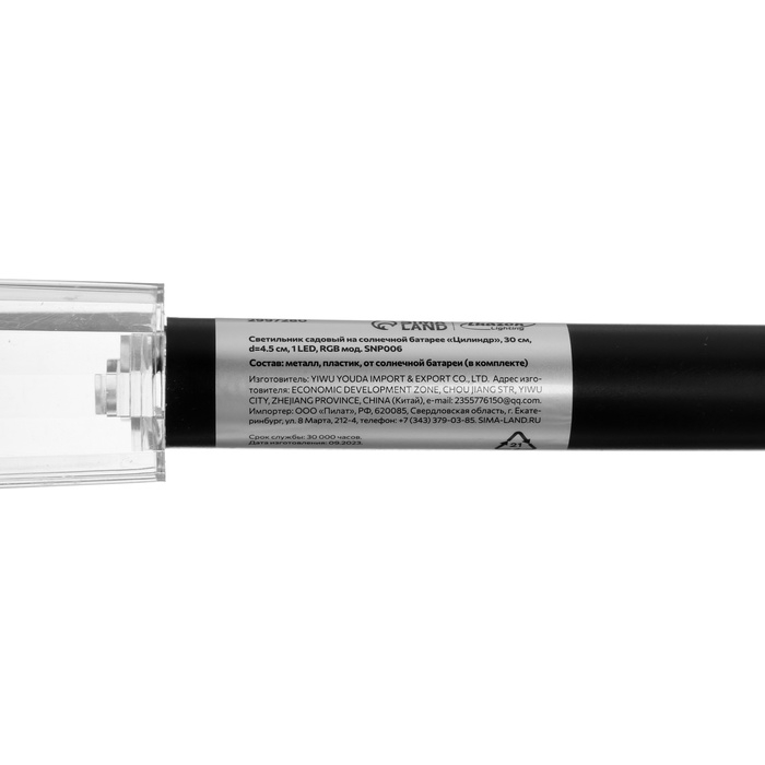 Садовый светильник на солнечной батарее «Цилиндр», 4.5 × 30 × 4.5 см, 1 LED, свечение мульти (RGB)