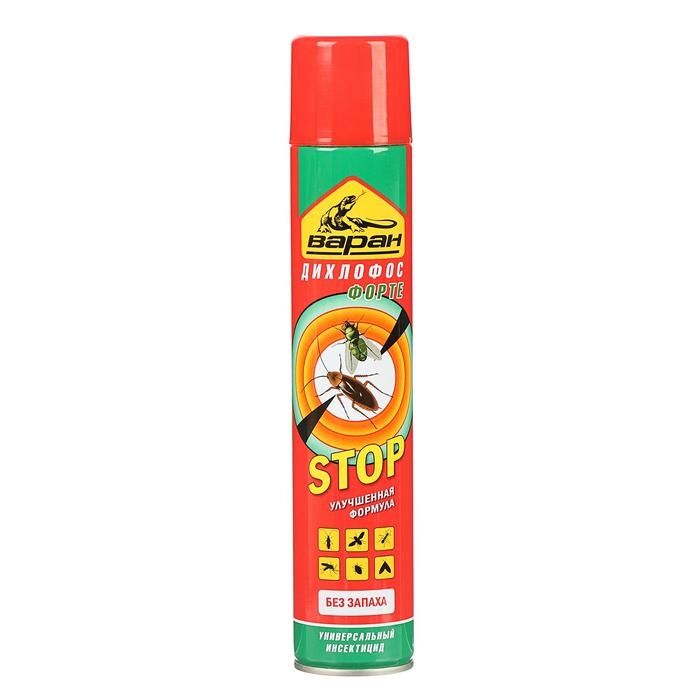 На природе и дома многие люди сталкиваются с клещами, клопами, москитами и другими опасными насекомыми, которые способны причинить массу вреда. Они переносят инфекцию, пьют вашу кровь и просто раздражают своим внешним видом. Вы устали бороться с ними? Дихлофос от торговой марки «Варан» — высокоэффективное средство для уничтожения ползающих (тараканов, муравьёв, клопов и т. д.), а также летающих насекомых (мух, москитов, комаров). Способ применения: перед использованием хорошо взболтайте, распылите. Состав: тетраметрин 0,12 %, циперметрин 0,2 %, пиперонилбутоксид 0,4 %, отдушка менее 5 %, функциональные добавки менее 5 %, смесь бутан / пропан / изобутан более 30 %, растворители более 30 %. Способ применения: перед использованием хорошо взболтайте, распылите.