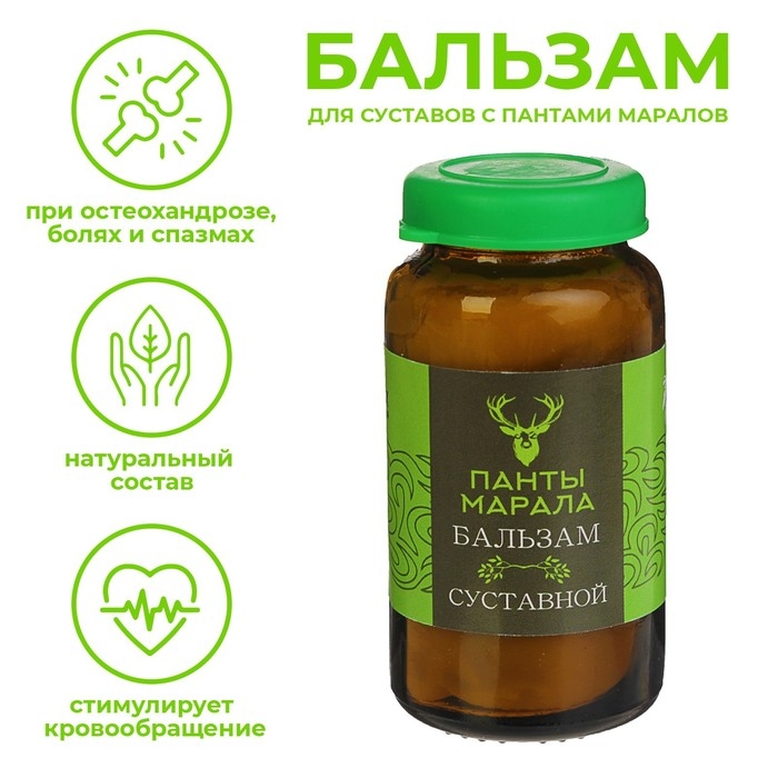 Бальзам с пантами алтайского марала поможет при болях в суставах коленей, пальцев рук и ног, плечевого пояса, болях и спазмах связок и хрящей.