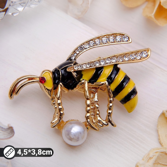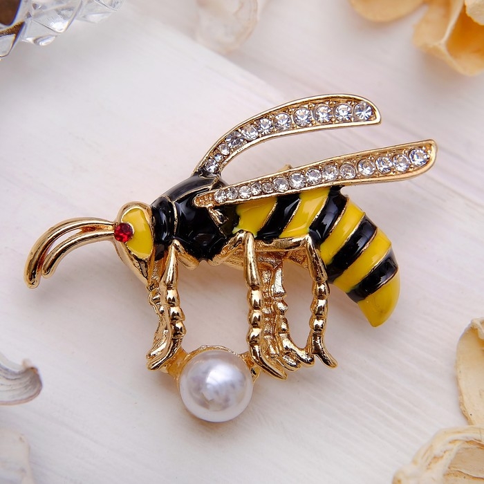 Брошь «Пчелка» с бусиной, цветная в золоте