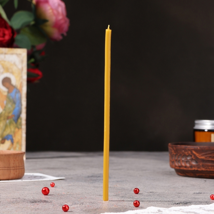 Эту свечу вы сможете использовать как в церковном, так и в домашнем обиходе для религиозных обрядов. Она не содержит ароматических примесей и красителей.