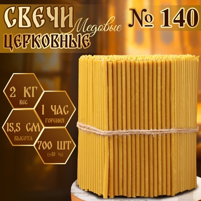 Свечи церковные медовые №140, упаковка 2кг, парафин + медовое масло