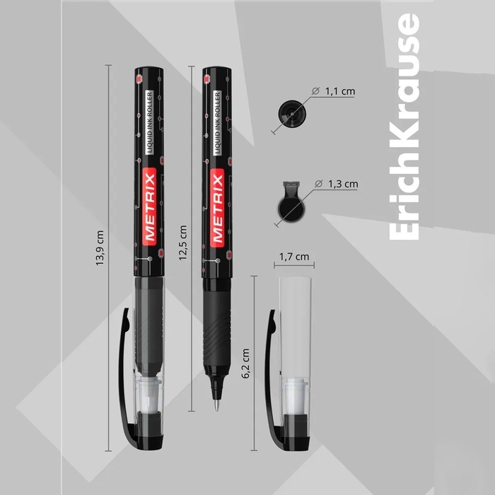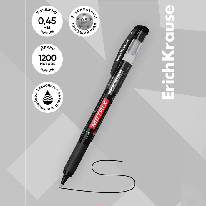 Ручка-роллер Erich Krause METRIX, узел 0.5, чернила чёрные, длина письма 1200 метров