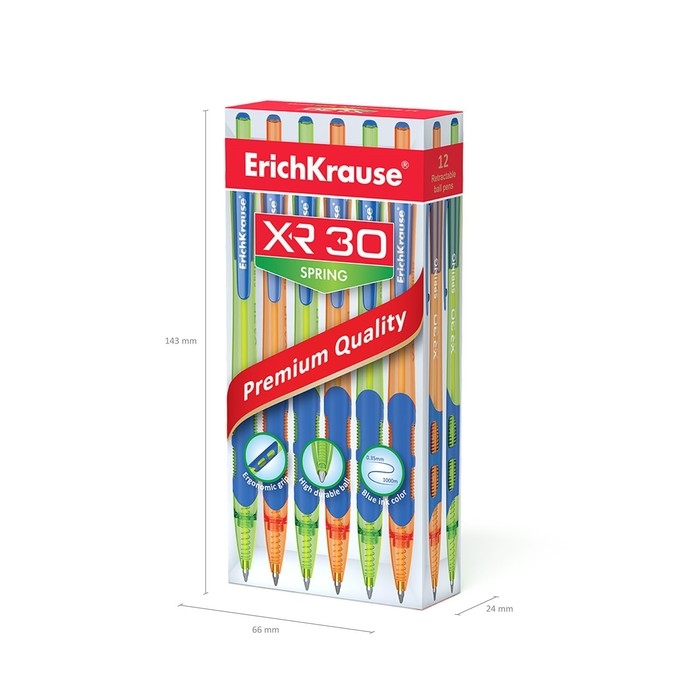 Ручка шариковая автоматическая ErichKrause XR-30 Spring, узел 0.7 мм, чернила синие, резиновый держатель, длина линии письма 1000 метров, МИКС