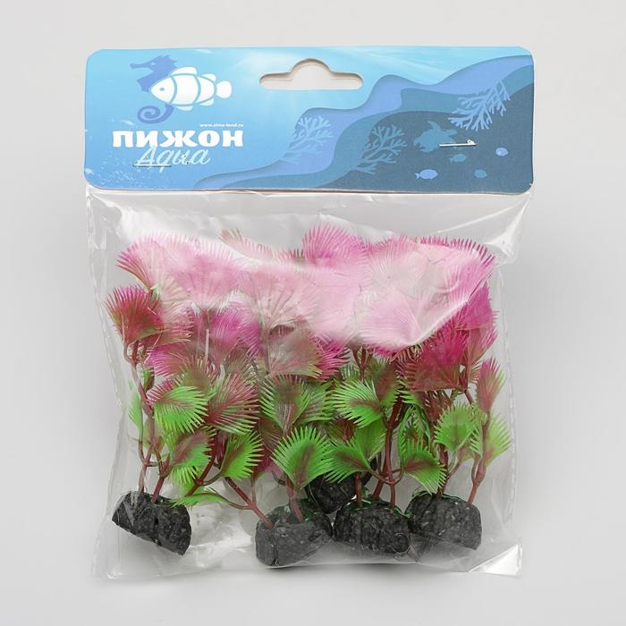 Набор растений искусственных аквариумных на подставке под камень (размер 1 шт 10х2,5х1,5 см)