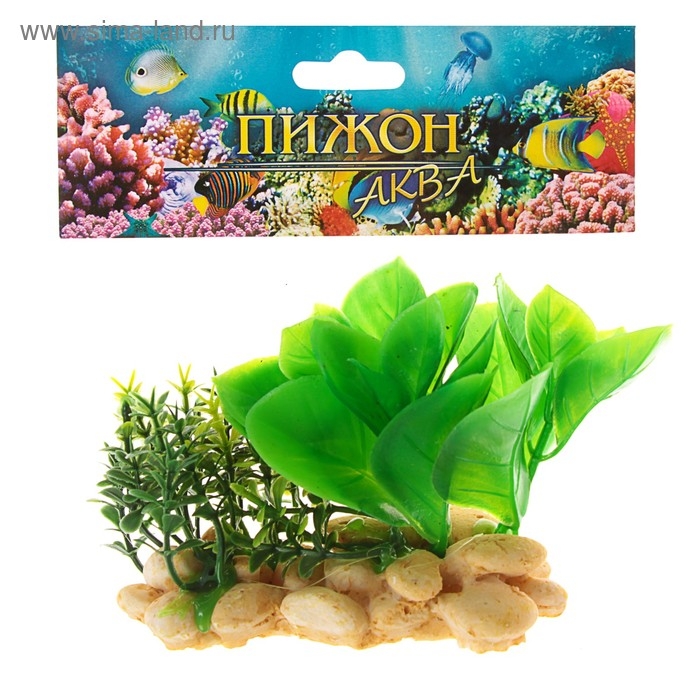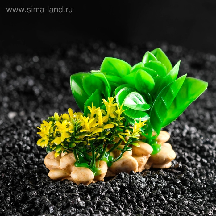 Растение искусственное аквариумное на подставке под камень, 12 х 12 х 6 см