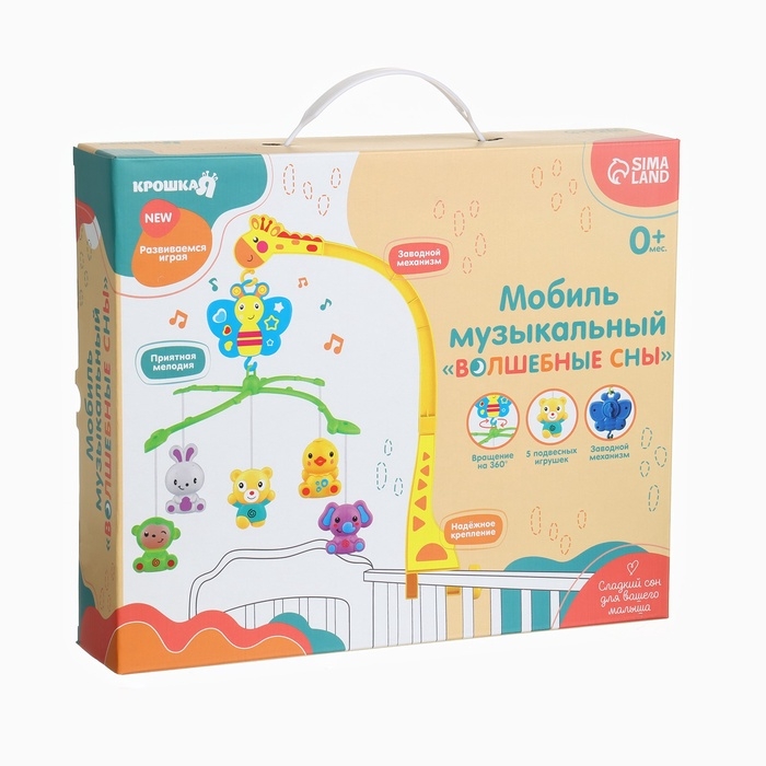Мобиль музыкальный на кроватку «Бабочка. Малыш зоо», заводной, Крошка Я