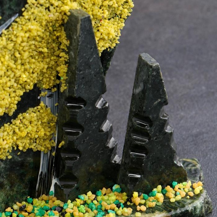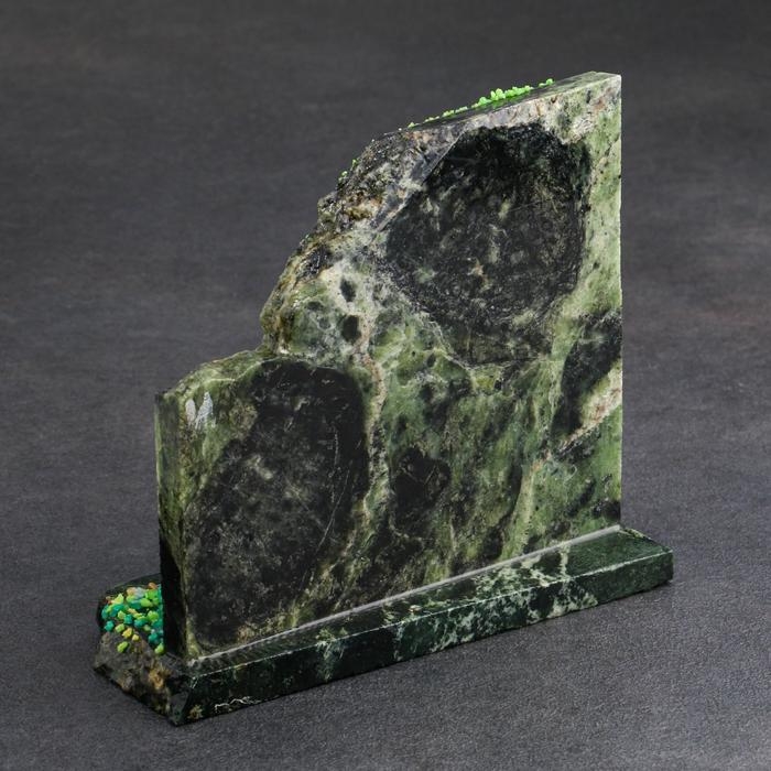 Серпентинит в народе называют змеевиком из-за схожести со змеиной кожей. Цвет минерала варьируется от тёмно- до жёлто-зелёного.