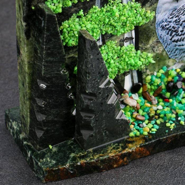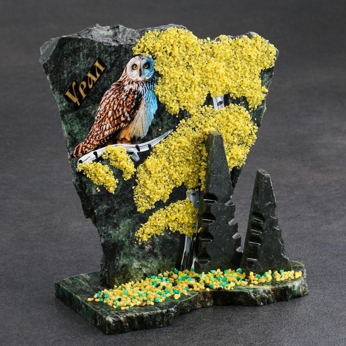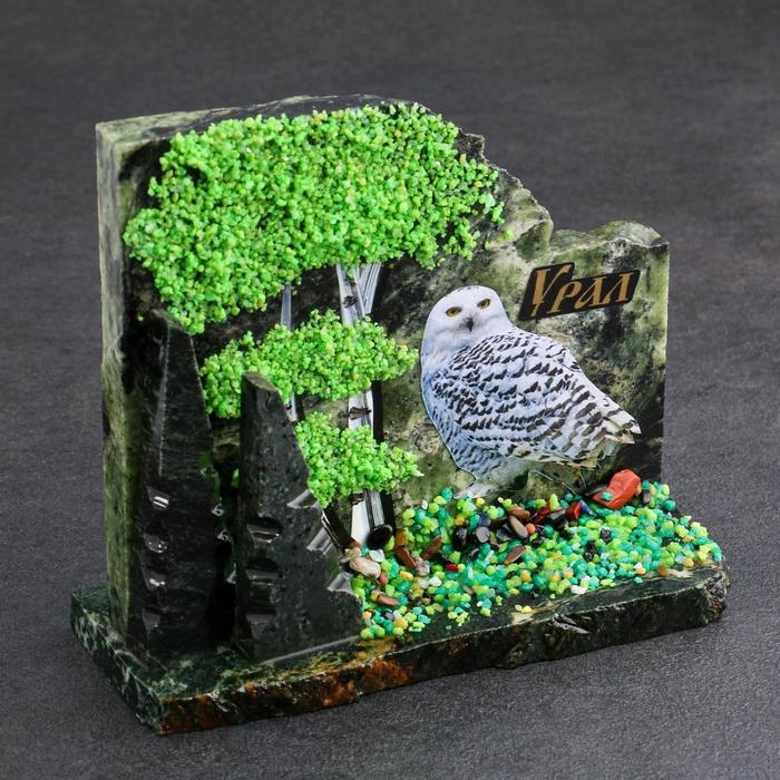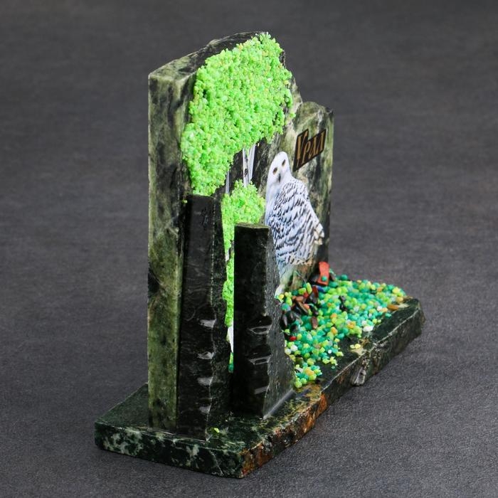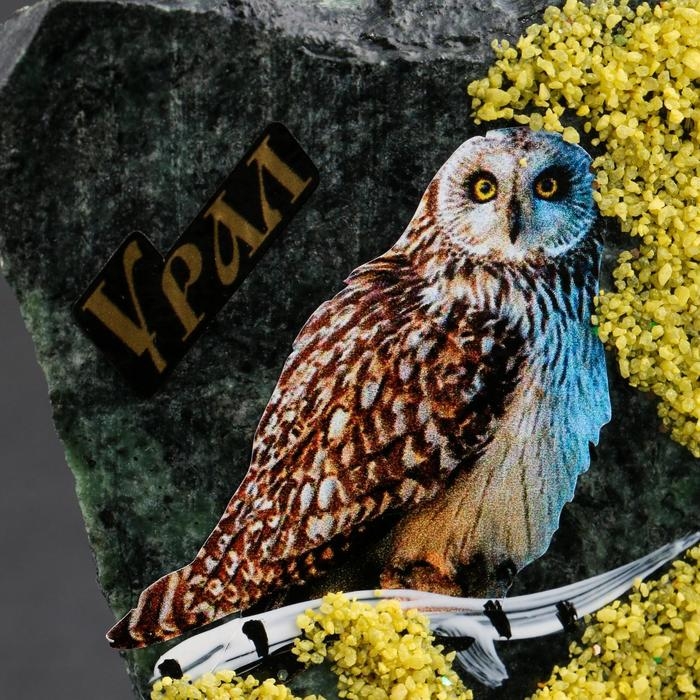 Сувенир-скол "Сова", змеевик, каменная крошка, большой, микс