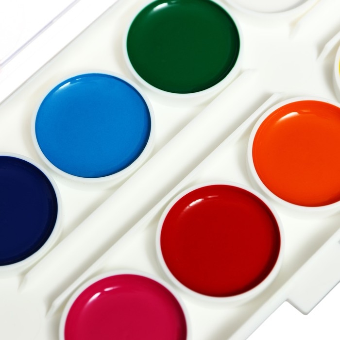 Краски акварельные, в кюветах, с кистью, 12 цветов