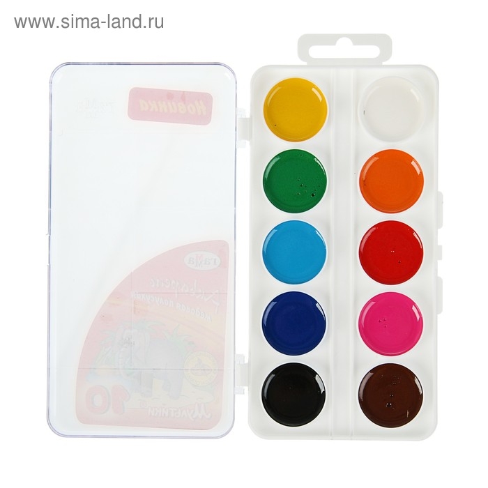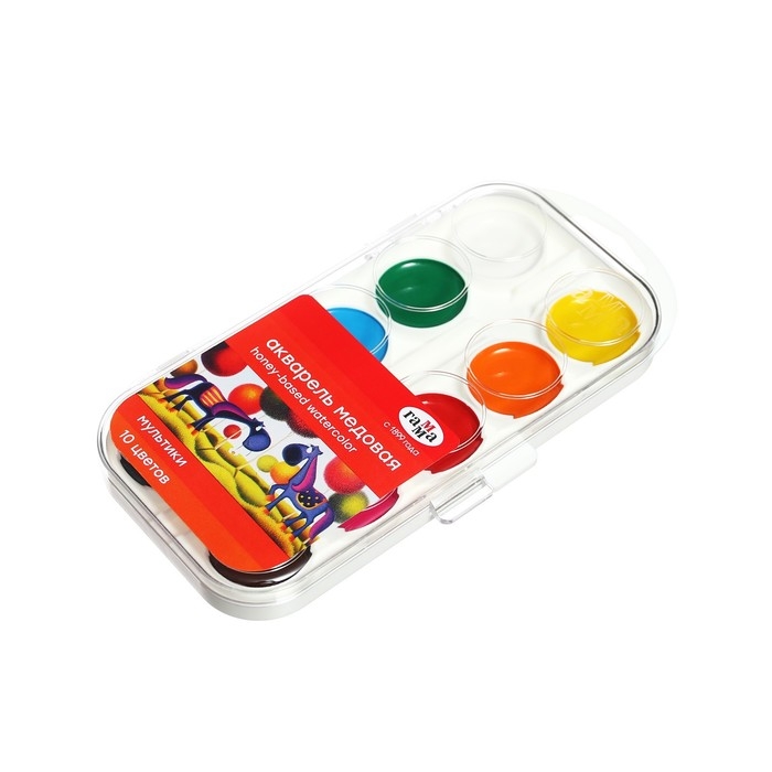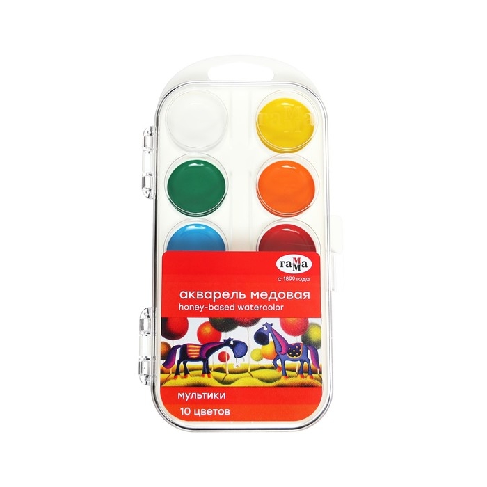 Акварель 10 цветов «Гамма» «Мультики», в пластиковой коробке, без кисти