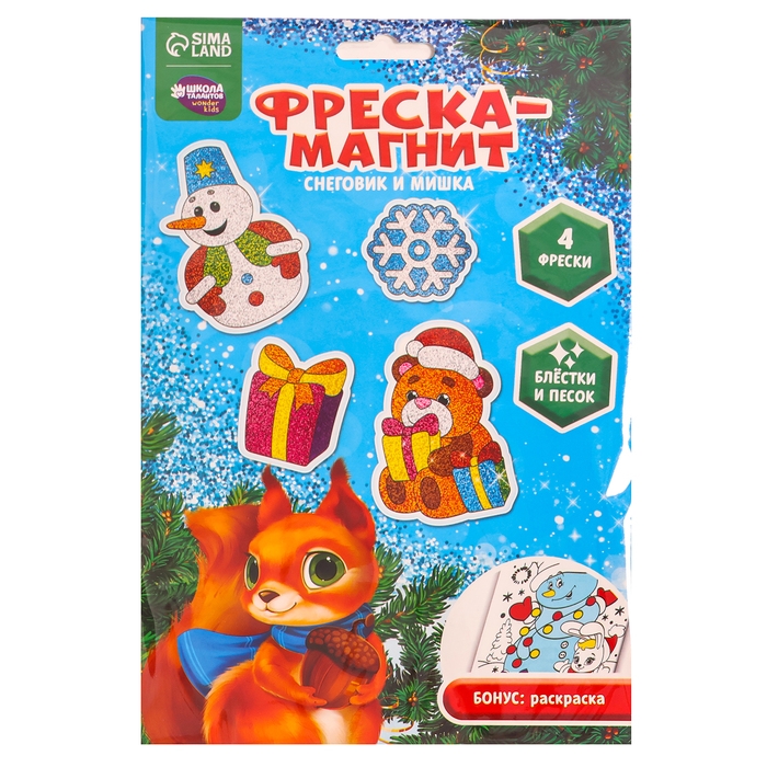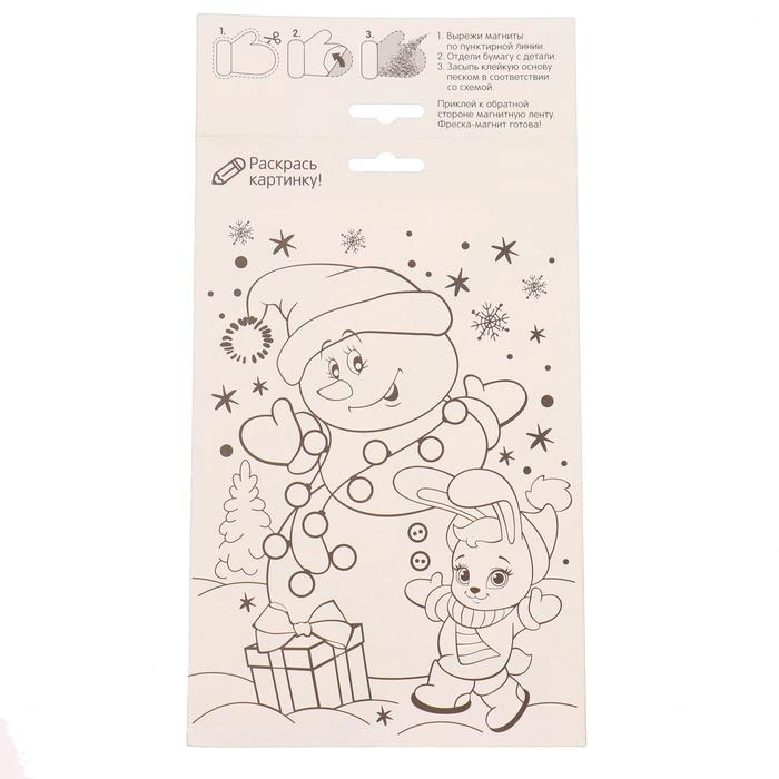 Магнит - фреска своими руками на новый год «Снеговик и мишка», набор 4 шт, набор для творчества