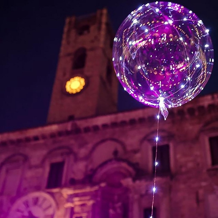- Поместить внутрь шара. Надуйте воздушный шар воздухом и сдуйте. Проденьте светодиодную ленту через трубочку для шаров, остатки ленты поместите внутрь шара. Надуйте его гелием, перевяжите и закрепите в держателе и трубочке для шаров.