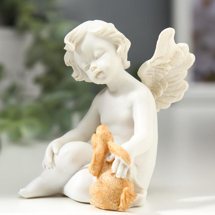 Сувенир полистоун "Белоснежный ангел с цветным кроликом" 6,8х6,5х6 см