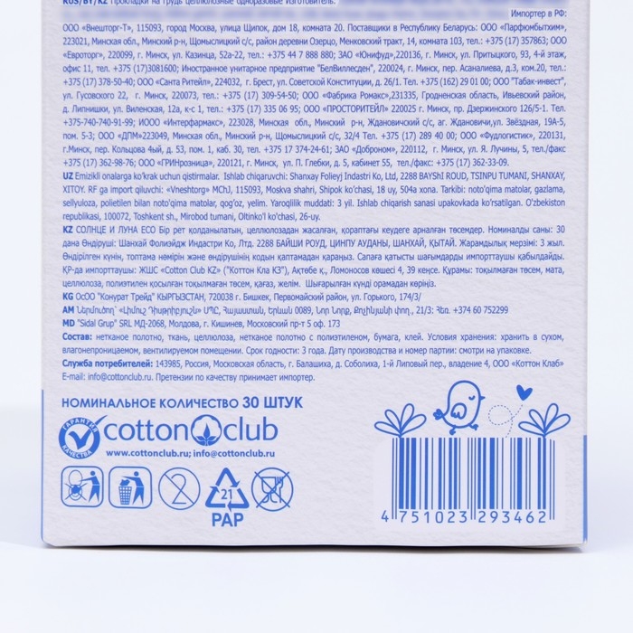 Прокладки на грудь «Солнце и луна», 30 шт.
