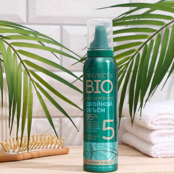 Мусс для укладки волос Прелесть Bio "Двойной объем" с морскими минералами Сверхсильной фиксации великолепно фиксирует укладку и надежно сохраняет ее в течение всего дня, без склеивания и утяжеления. Идеальная укладка, сильные, красивые и здоровые волосы.