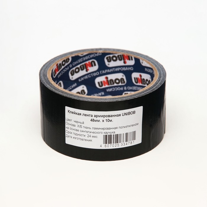 Клейкая лента Unibob армированная чёрная 48мм х 10м