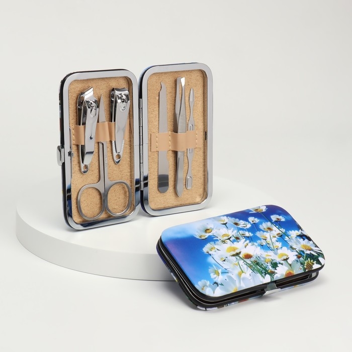 Набор маникюрный «Нежные пионы», 7 предметов, в футляре
