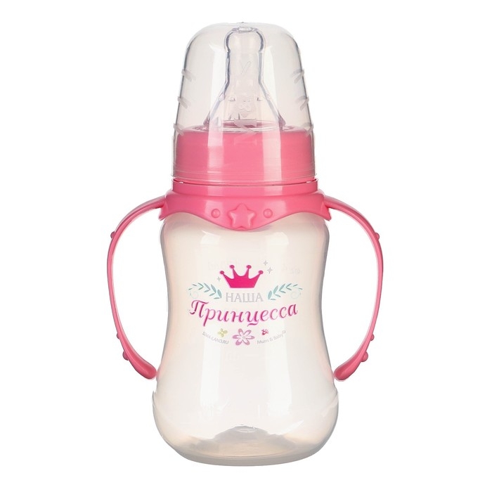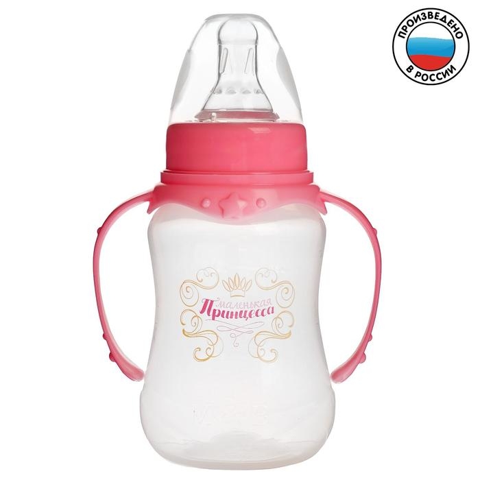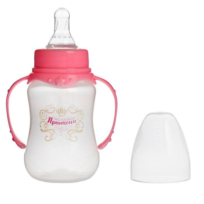Бутылочка для кормления «Принцесса», классическое горло, приталенная, с ручками, 150 мл., от 0 мес., цвет розовый