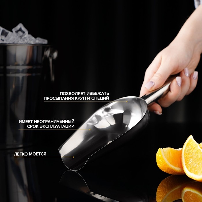 Совок из нержавеющей стали для льда и сыпучих продуктов, 260 мл, 24×9 см, цвет хромированный