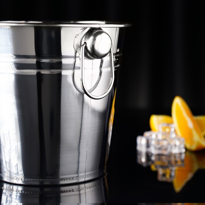 Ведро для льда из нержавеющей стали Доляна, 4,5 л, 20,5×20,5 см, цвет хромированный
