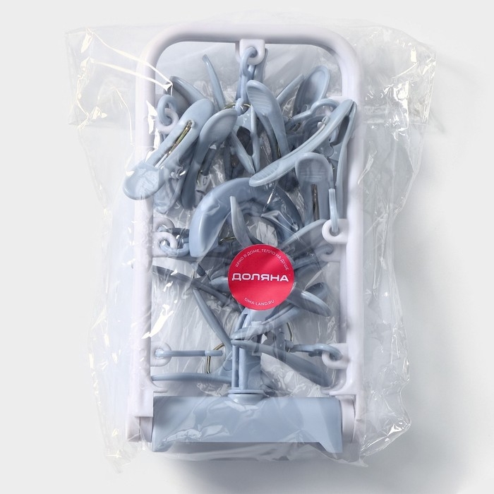 Сушилка для белья подвесная складная, 12 прищепок, 37×11×18 см, цвет серый