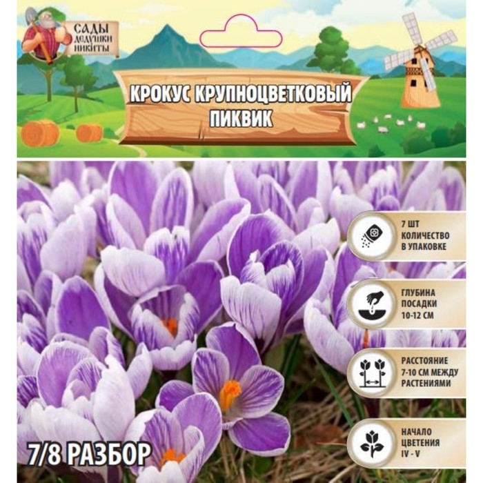 Крокус крупноцветковый Пиквик, р-р 7/8, 7 шт, Осень 2024