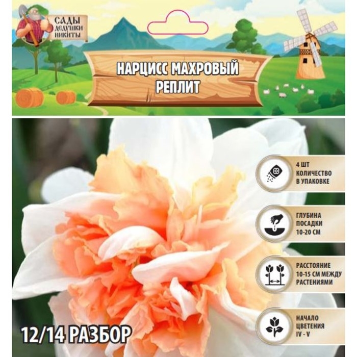 Нарцисс махровый Реплит, р-р 12/14, 4 шт, Осень 2024
