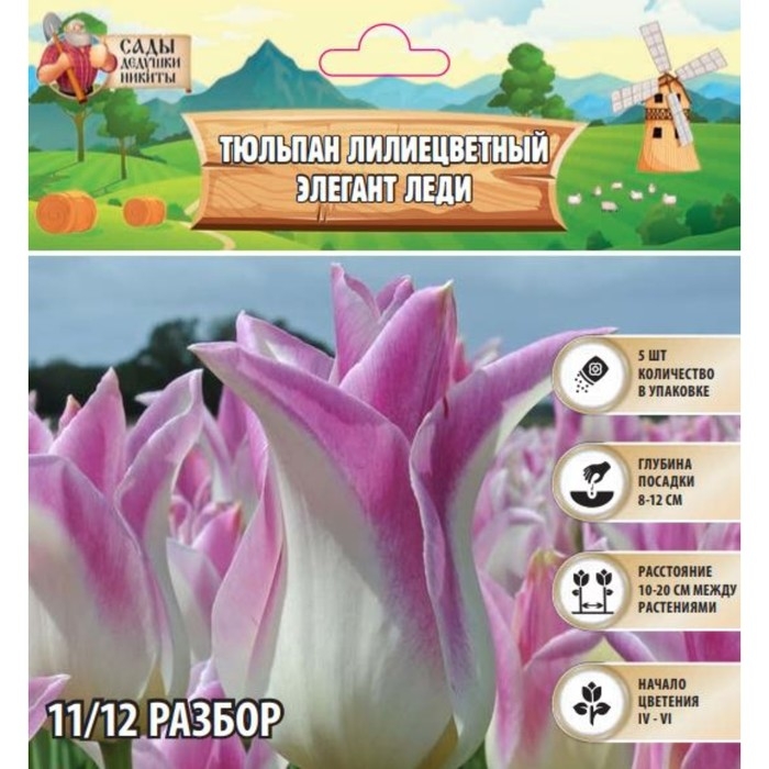Тюльпан лилиецветный Элегант Леди, р-р 11/12, 5 шт, Осень 2024