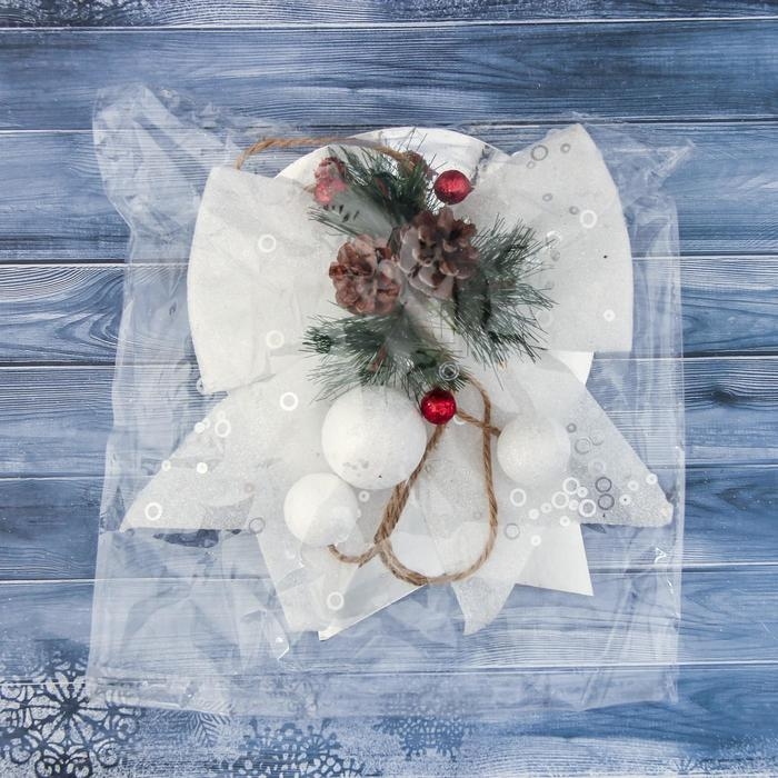 Украшение новогоднее "Бант с декором" 16х18,5 см, белый