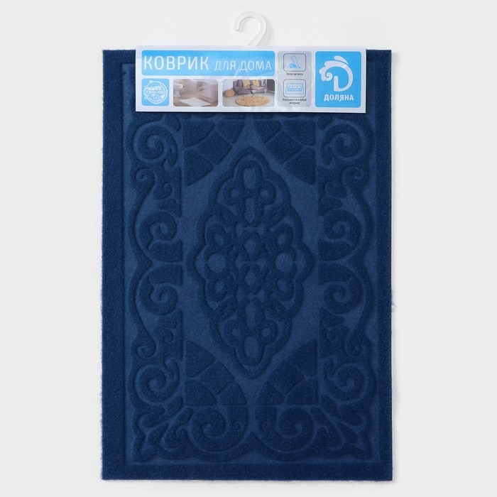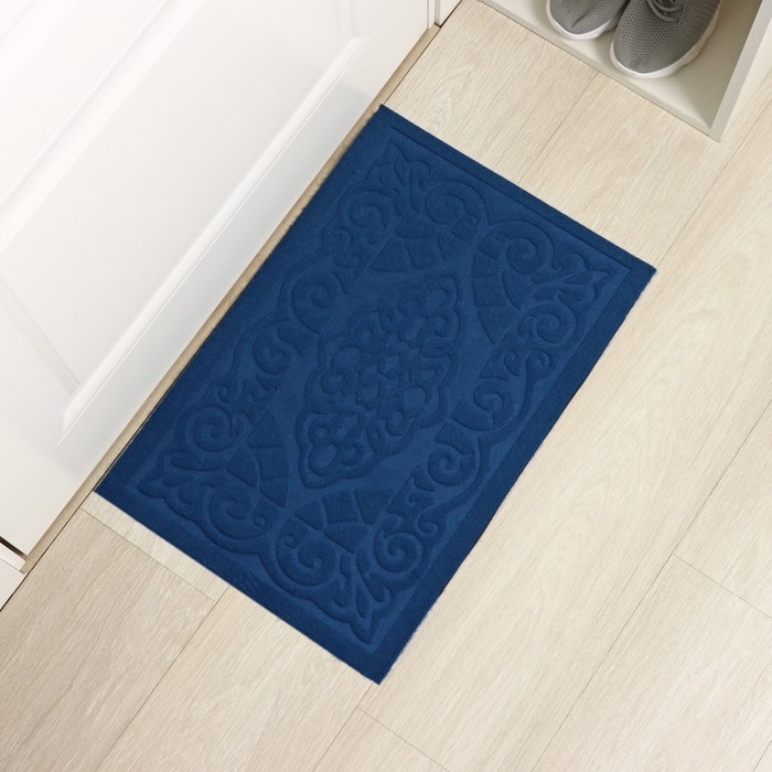 Коврик придверный Доляна «Восточная сказка», влаговпитывающий, без окантовки, 40×60 см, синий