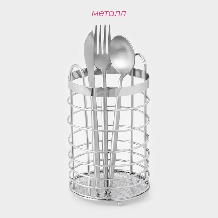 Изготовленная из высококачественного металла, сушилка отличается прочностью и долговечностью. Логичный и продуманный дизайн позволит удобно разместить вилки, ложки и ножи, поддерживая порядок после каждой еды. Теперь вам не придется беспокоиться о том, куда положить чистые столовые приборы — они будут всегда под рукой и в идеальном состоянии.