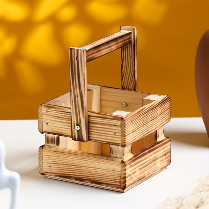 Кашпо деревянное 15×12,5×9,5 см "Однушка Лайт", двухреечное, обжиг Дарим Красиво
