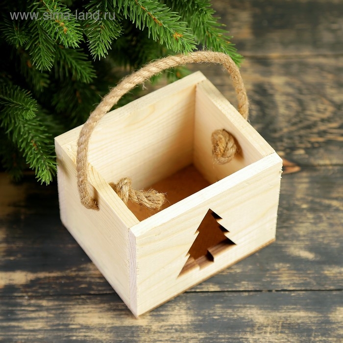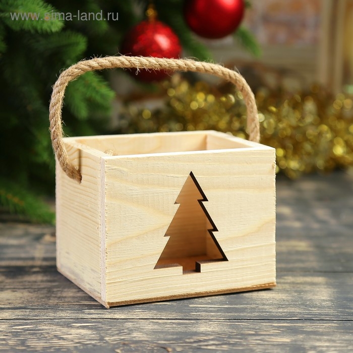 Кашпо деревянное "Ёлочка", ручка- шнур, 12,5х10,5х9,5см