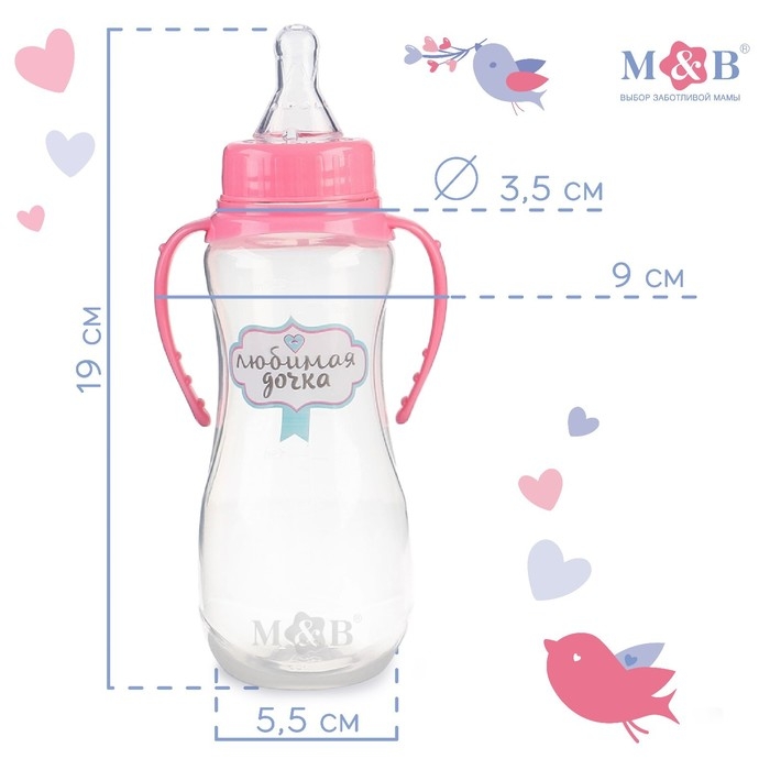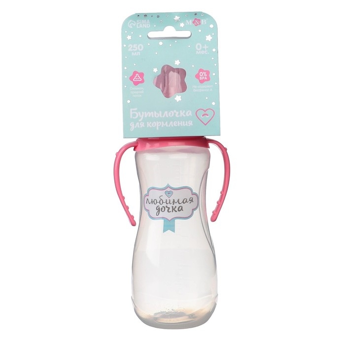 Бутылочка для кормления «Любимая доченька», классическое горло, приталенная, с ручками, 250 мл., от 3 мес., цвет розовый