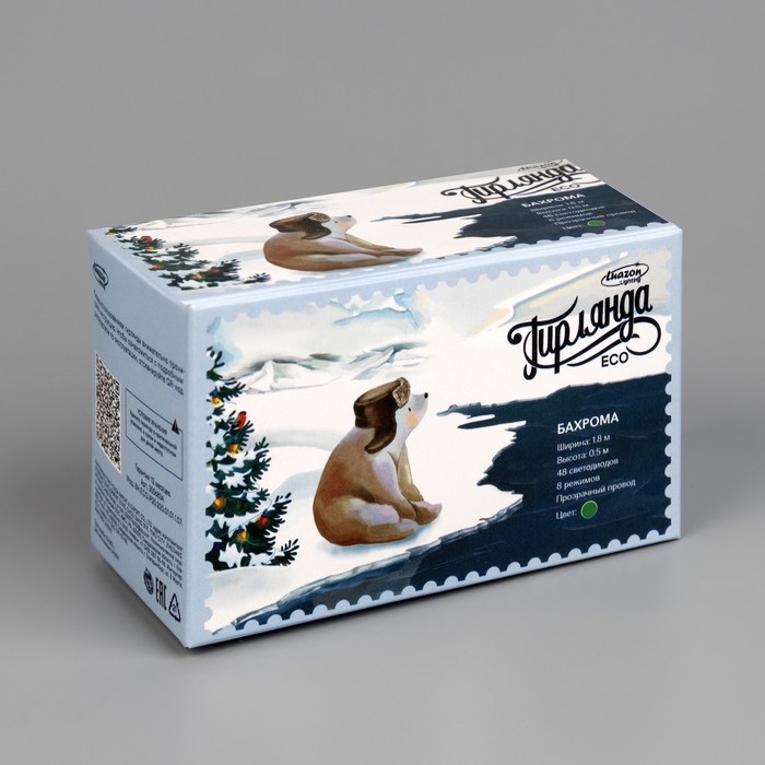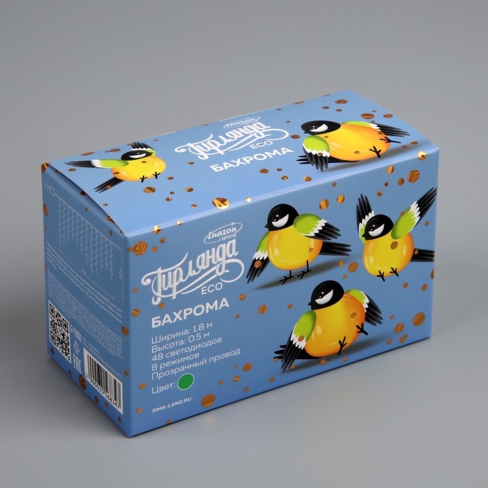 Гирлянда «Бахрома» 1.8 × 0.5 м, IP20, прозрачная нить, 48 LED, свечение зелёное, 8 режимов, 220 В