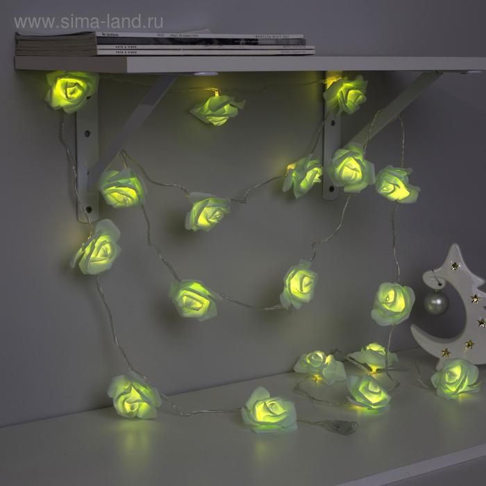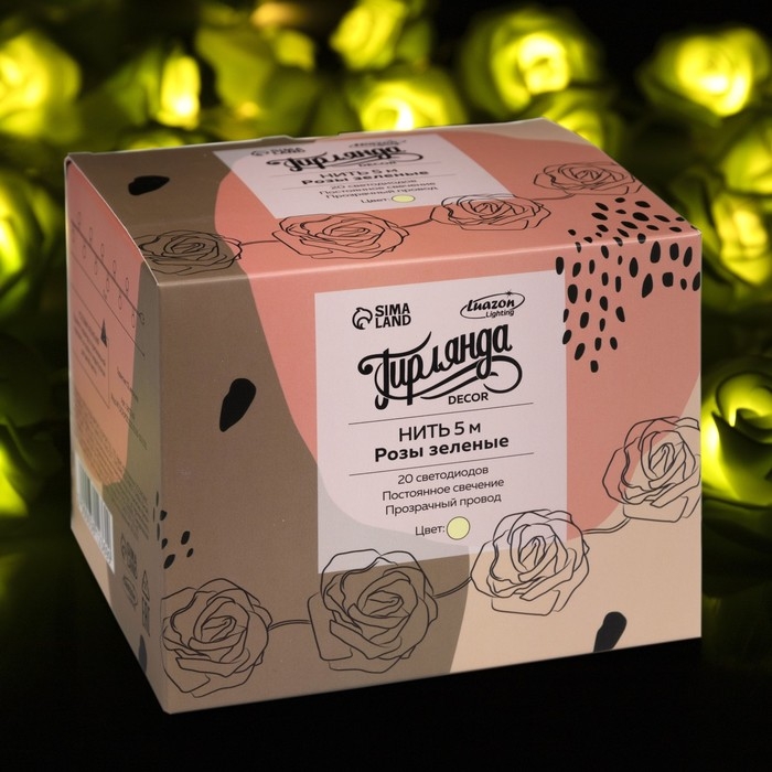 Гирлянда «Нить» 5 м с насадками «Розы зелёные», IP20, прозрачная нить, 20 LED, свечение тёплое белое, 220 В
