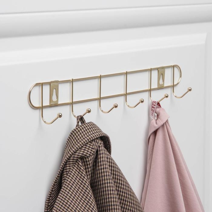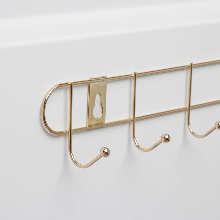 Вешалка настенная Доляна «Лайт», 6 крючков , 33×5×3,5 см, золотая