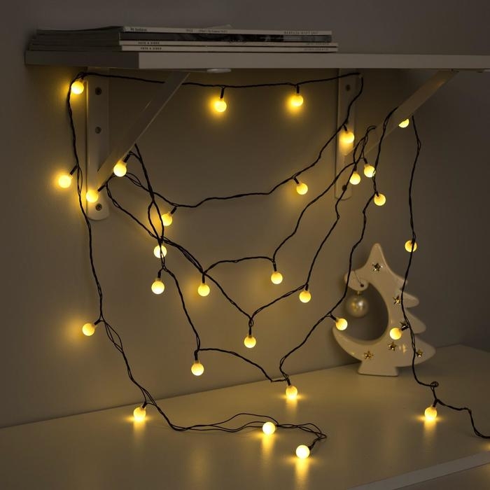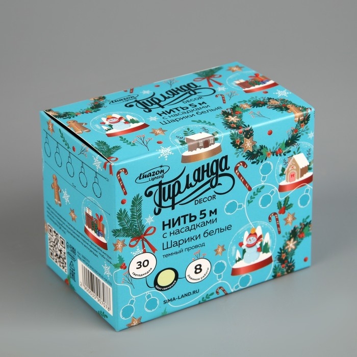 Гирлянда «Нить» 5 м с насадками «Шарики белые», IP20, тёмная нить, 30 LED, свечение тёплое белое, 8 режимов, 220 В