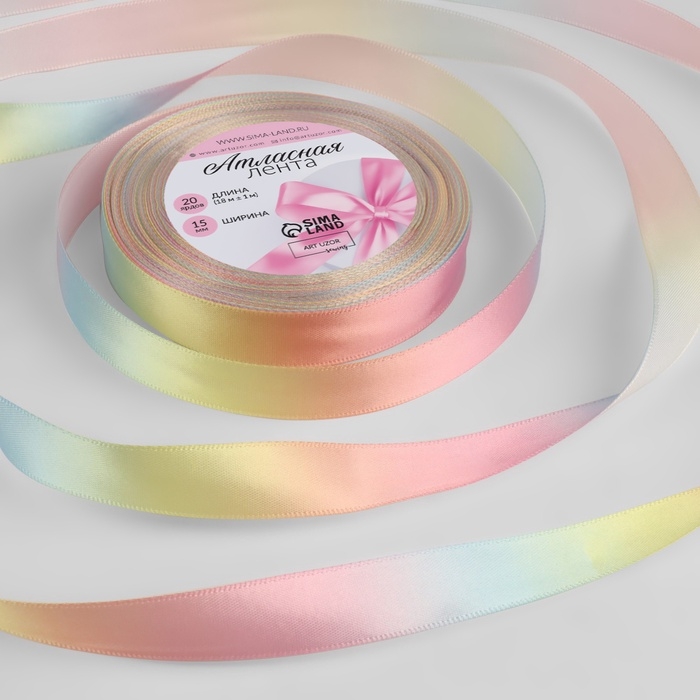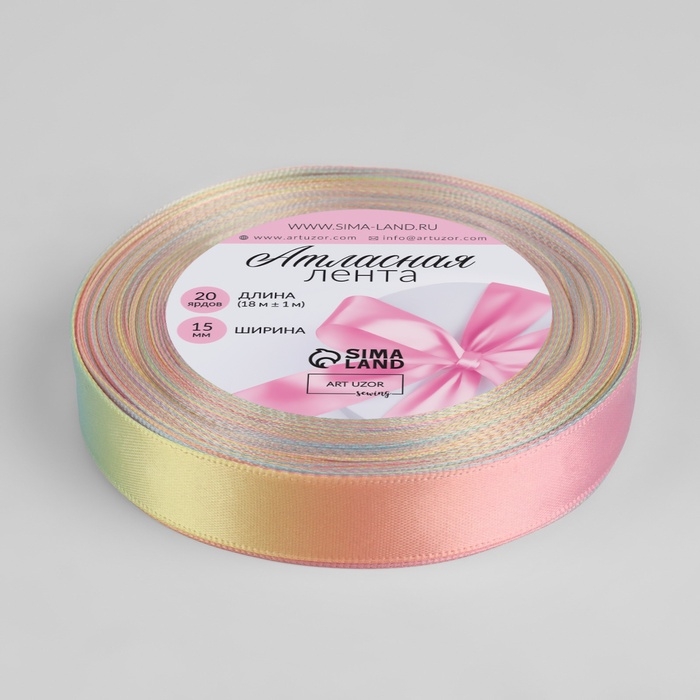 Лента атласная «Радуга», 15 мм × 18 ± 1 м, разноцветная