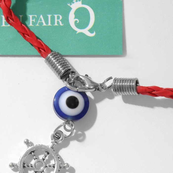 Браслет-оберег «Красная нить» талисман защиты, штурвал с бусиной, цвет синий с серебром, 18 см