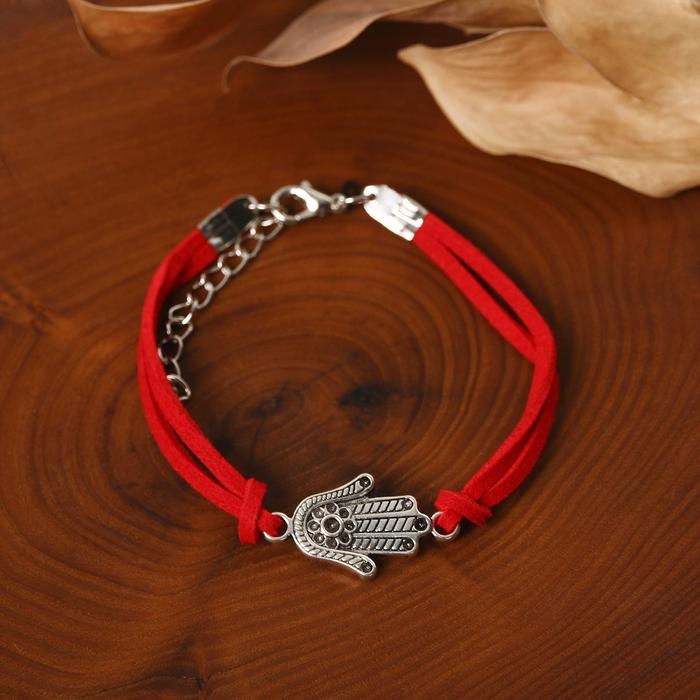 Браслет-оберег «Красная нить» талисман защиты, рука Хамса классическая, цвет чернёное серебро, 18 см
