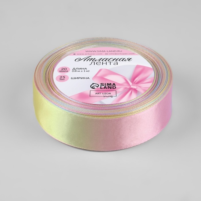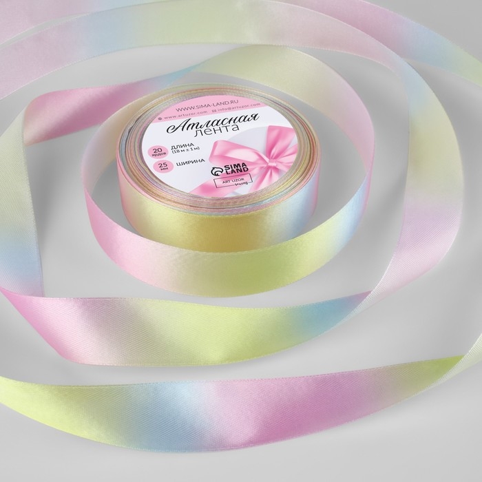 Лента атласная «Радуга», 25 мм × 18 ± 1 м, разноцветная