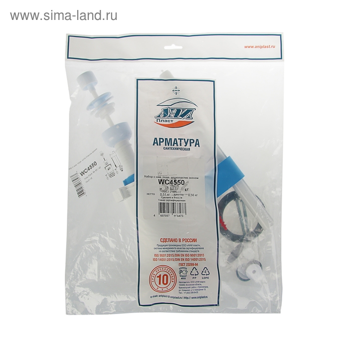 Арматура для смывных бачков "АНИ Пласт" WC4550 Эконом, с нижней подводкой 1/2", шток хром